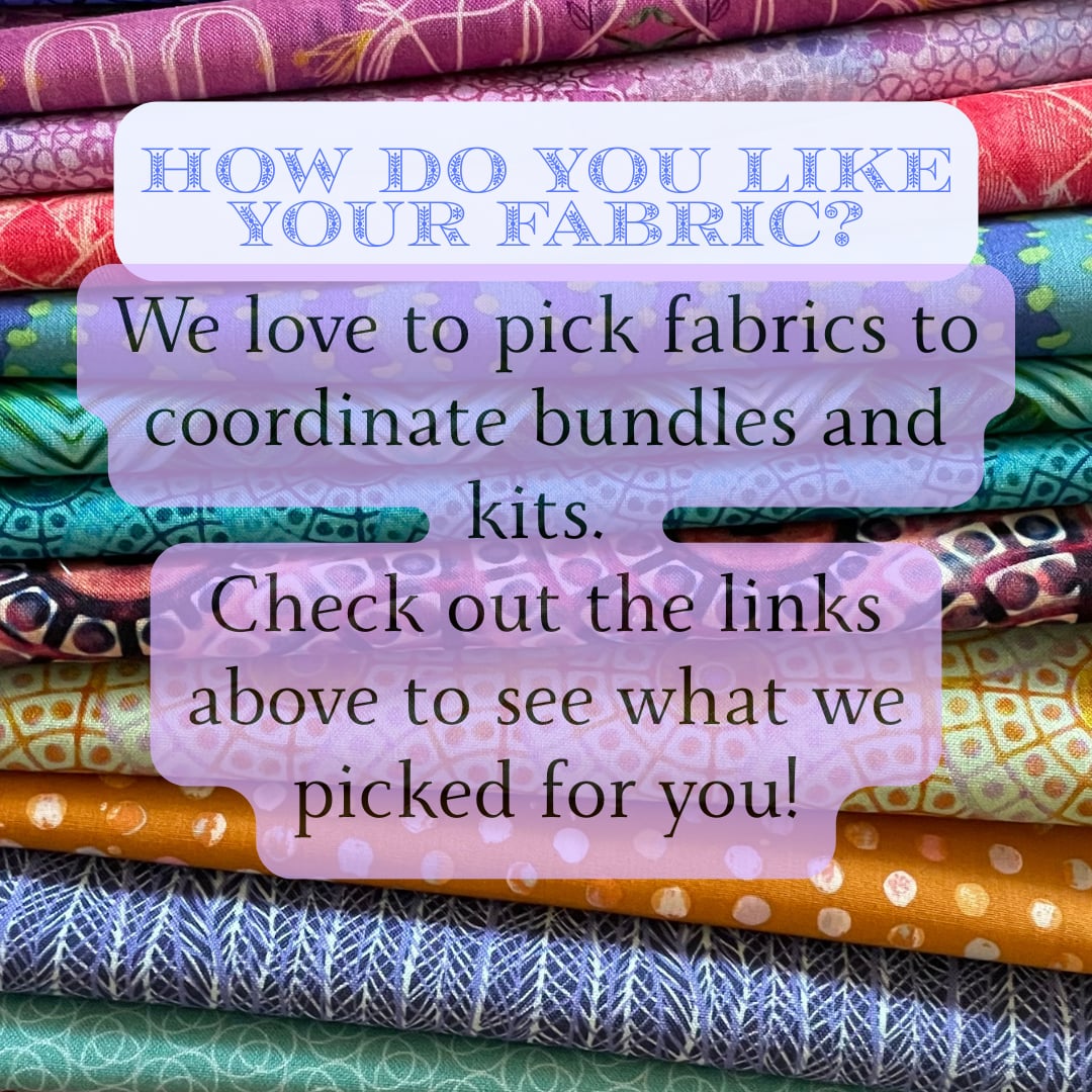 We’re a brick-and-mortar, full-service quilt shop at heart. While you’ll find a curated selection of kits, bundles, patterns, and some of our most requested products here online, our in-store shelves hold even more inspiration.
