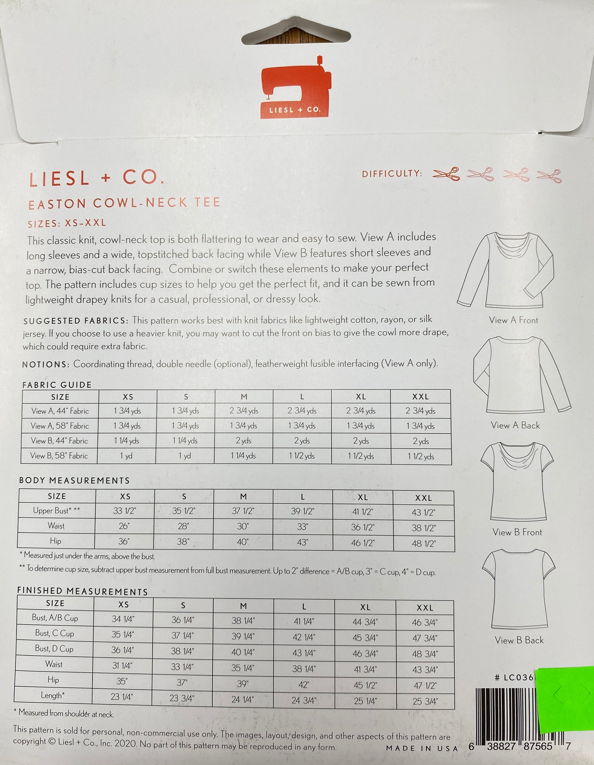 Easton Cowl-Neck Tee Pattern by Liesl + Co,