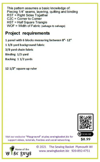 Makes a throw that is 36" x 48". This is a great pattern to use those panels with printed blocks. If you panel blocks are not quite the right size, just add a border all around and trim to size.