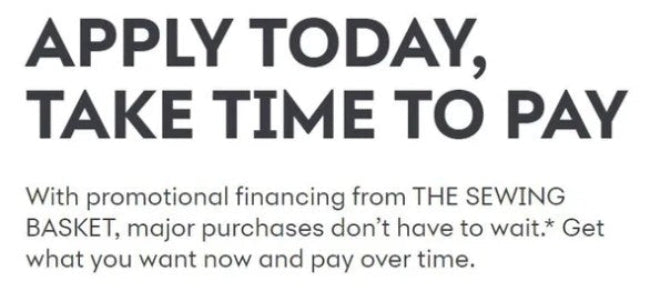 With promotional financing from The Sewing Basket, major purchases don't have to wait. Get what you want now and pay over time. Click the button below to get pre-approved.