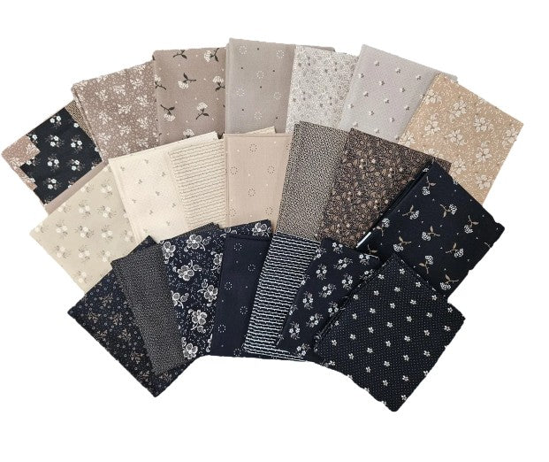 This group of 21 fat quarters of Circa Onyx dances on the dark side with deep hues of walnut, ebony, espresso, and touches of taupe.