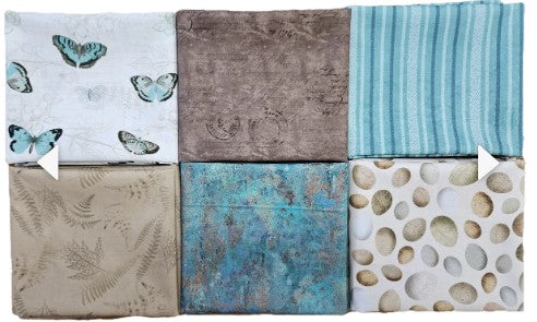 6 Fat Quarters - Teal, beige, brown, butterflies