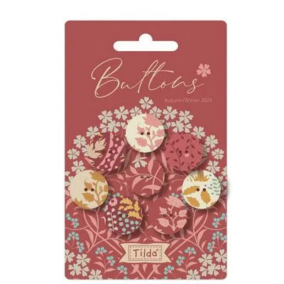 Tilda's Sanctuary Collection Fabric Covered Buttons includes 8 3/4in (18mm) fabric covered buttons. Tilda Fabric's Jubilee Collection are 100% cotton prints designed by Norwegian designer Tone Finnanger.