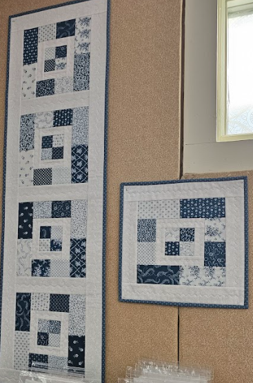 Table runner 13" x 46" and trivet 13" x 13" using assorted 5" squares or scraps could be used for any season.