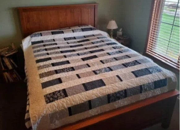 The kit includes the Fat Quarter Love book and fabric for the front. Finished size is 67" x 98".