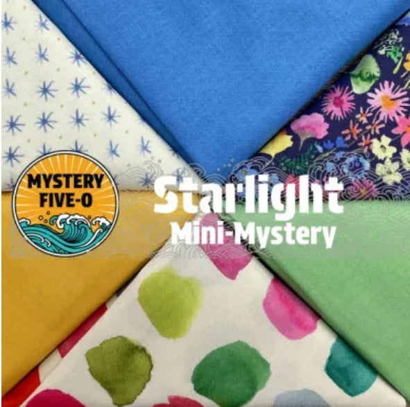 Get ready to unleash your creativity and stitch up something fabulous with this 6 fat quarter bundle of fun flower splash fabrics in the Mystery Five-0 Starlight Mini-Mystery!