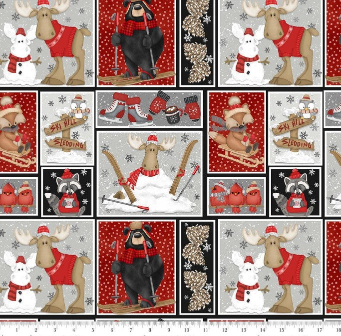 These cute little animals would make a darling quilt! Animals, prints and plaids all add character to this red, black and white line.
